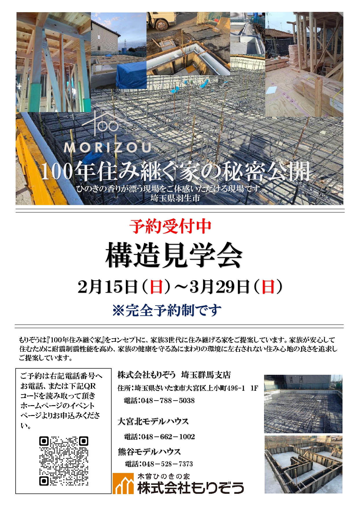 見学会 100年住み継ぐ家の秘密公開 開催日時: 2026年2月15日(日)~3月29日(日) 10:00~16:00 開催場所:埼玉県羽生市 構造材・外張り断熱・超高気密をご体感ください。 ひのきの香りとともにお待ちしております。 このイベントに参加する PREV 一覧に戻る 見学会 木曾ひのき体験ツアー 相談会